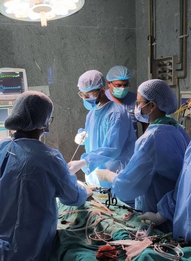 सर्जरी विभागाध्यक्ष डॉ. ओ.पी. राज के नेतृत्व में डॉ. रघुराज सिंह, डॉ. बी.डी. तिवारी और डॉ. प्रियंका माहेश्वर की टीम ने ऑपरेशन को अंजाम दिया। एनेस्थीसिया विभाग से डॉ. मधुमिता मूर्ति, डॉ. भावना रायजादा, डॉ. मिल्टन, डॉ. मयंक आगरे व पीजी रेजिडेंट्स ने महत्वपूर्ण भूमिका निभाई। रेडियोलॉजी विभागाध्यक्ष डॉ. अर्चना सिंह ने सटीक रिपोर्टिंग कर सर्जरी में अहम सहयोग दिया। ओटी स्टाफ सिस्टर योगेश्वरी, संतोष पांडे और अश्वनी मिश्रा का काम भी सराहनीय रहा। लैप्रोस्कोपिक तकनीक की वजह से बहुत कम चीरा लगा, रक्तस्राव लगभग नगण्य रहा मरीज जल्द ही सामान्य दिनचर्या में लौट सकती है