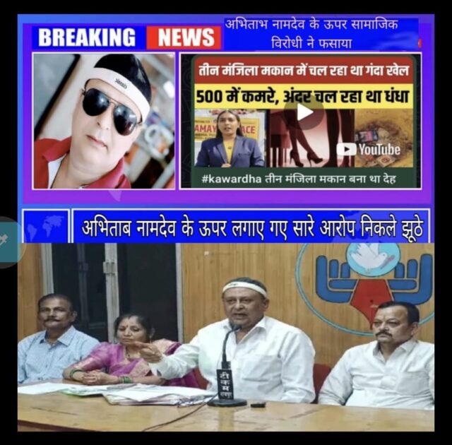 अभिताभ नामदेव ने बताया : कि मामला में सामाजिक हुई हार चलते मेरे बन रहे (लाज /महामाया पैलेस) की जानकारी को गलत ट्रैक्स कुछ मीडिया में इस बात को बढ़ा चढ़ा कर झूठा और पुलिस जांच के वीडियो को काट छांट कर और जोड़कर मीडिया में दिखाया गया था वो सरासर भ्रामक और झूठी फेक खबर थी और एक साधारण से मामले को सनसनीखेज बनाकर मेरे ही समाज के सामाजिक चुनाव मेरे ही प्रतिद्वंदी रहे संतोष (बबला) नामदेव और उनके पुत्र सौरभ नामदेव के द्वारा मेरे खिलाफ साजिश रचाई गई और मीडिया के साथीयो को भेजने की जानकारी सुनने को मिला चुकी मै चुनाव प्रक्रिया से 5 वी बार समाज का अध्यक्ष बना हु और मै दिल्ली भारत सरकार से 2010 से अखबार का संपादक हु ।